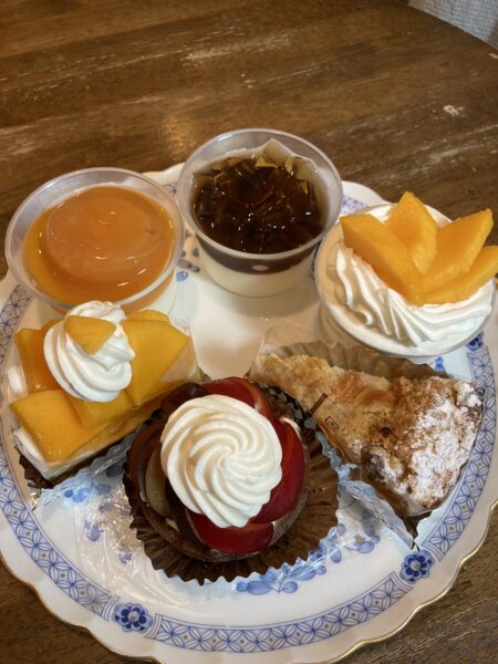 パンナコッタ(あんずゼリー、小豆紅茶ゼリー) マンゴーショート